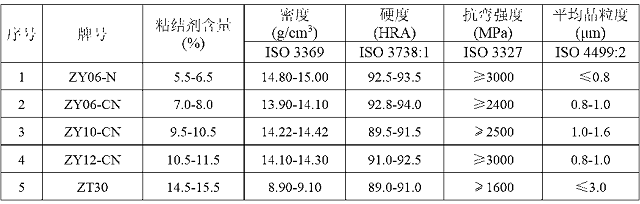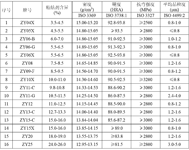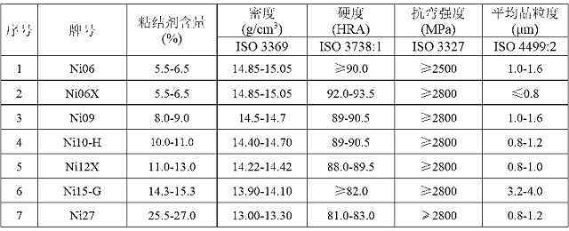 備注:粘結劑主要是鈷、鎳、鉻、鎳、碳化鉭/鈮、碳化鈦